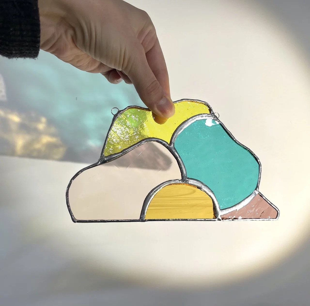 Ces pièces en verre coloré ont été réalisées par les élèves lors des ateliers d’initiation au vitrail Tiffany. L’objectif de cet exercice est de découvrir les bases de la découpe du verre, du sertissage au cuivre, et de l’assemblage des éléments par soudure à l’étain pour composer un motif simple et lumineux.